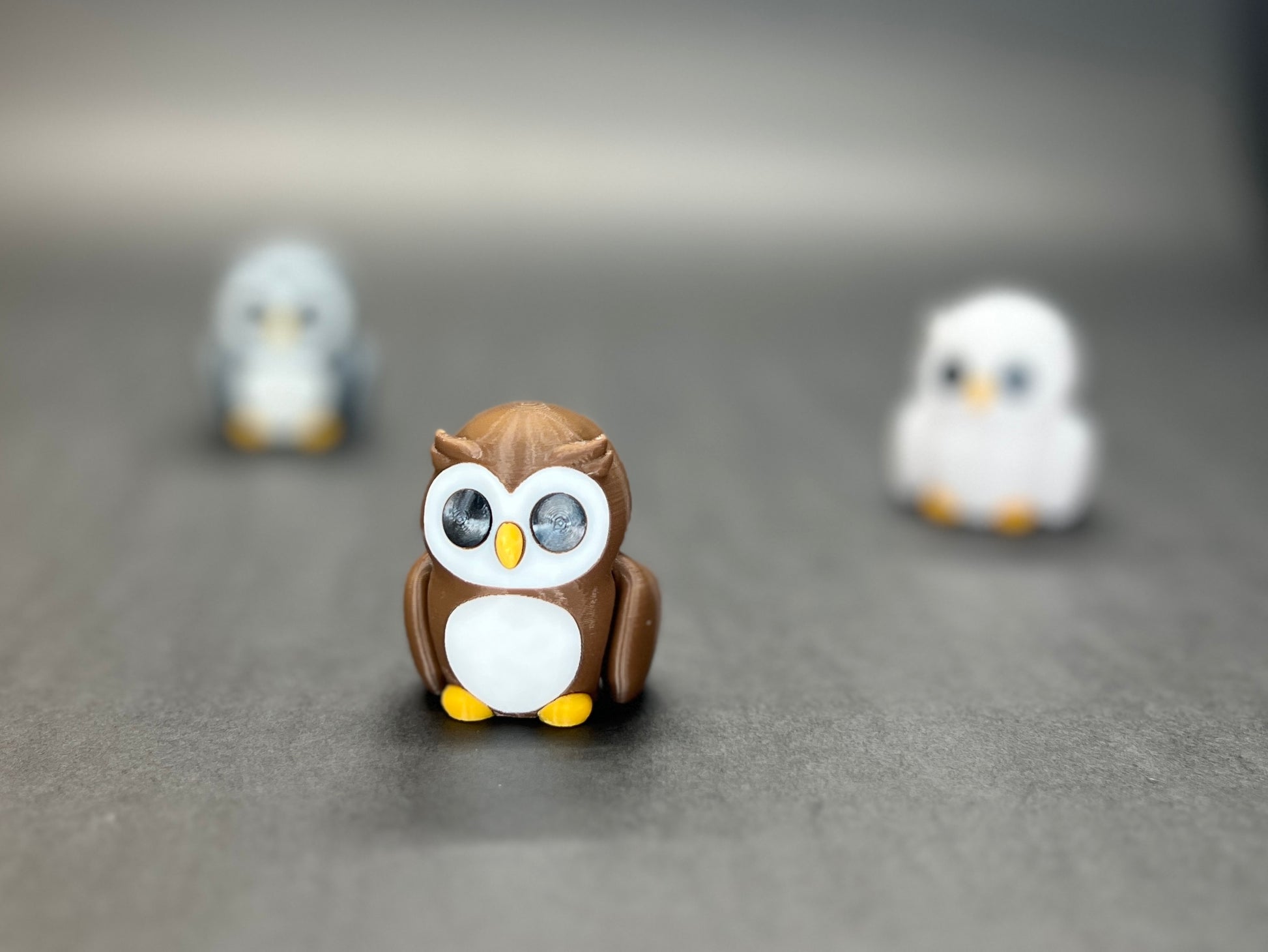 Bring a touch of charm to your space with this adorable baby owl! Carefully crafted from a 3D printed design, this cute little owl is perfect as a gift, desk companion, or decoration for your home. Its big eyes and playful design add warmth and personality to any setting.