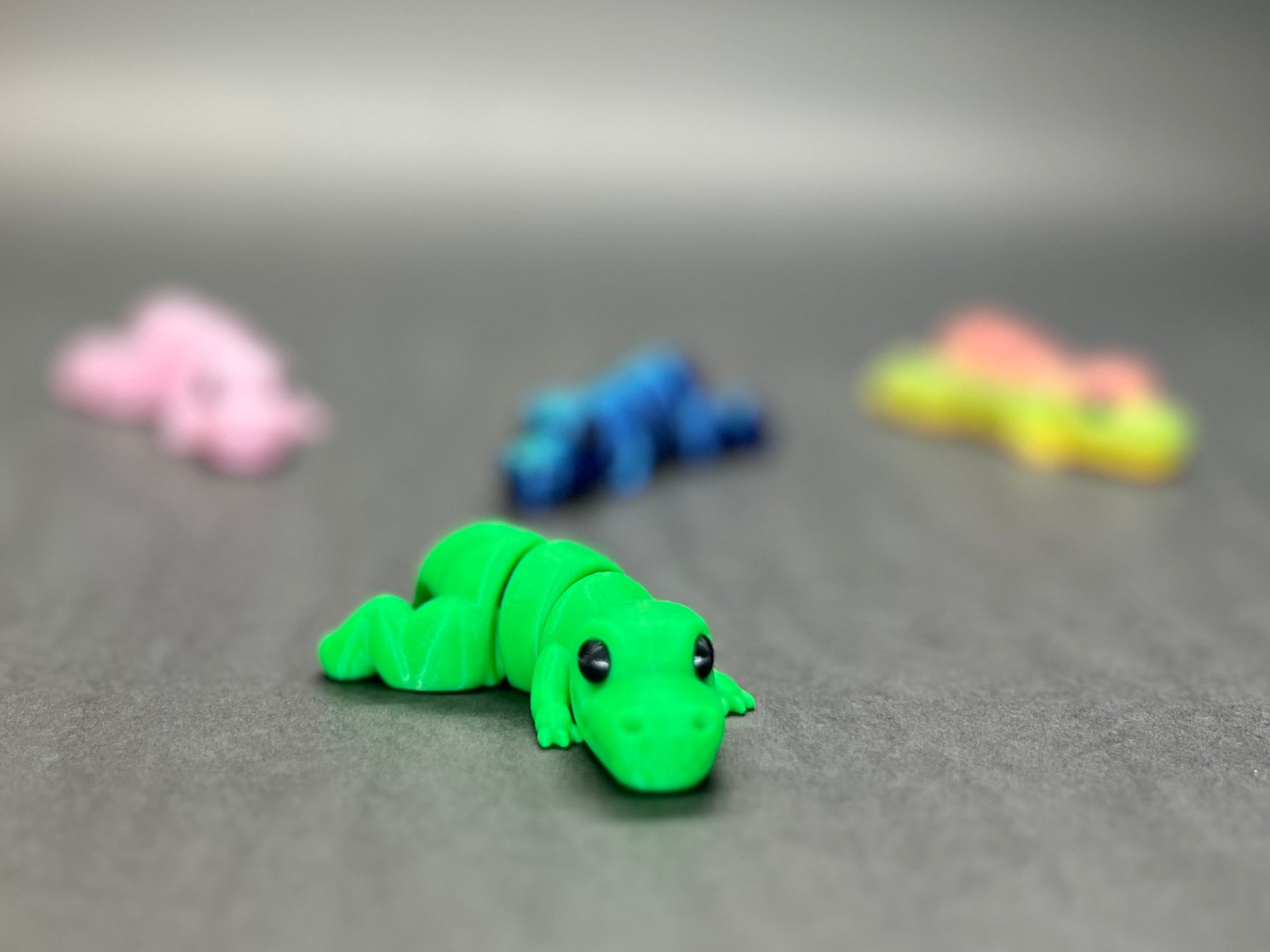 - Color: Vibrant green body with black eyes, bringing a playful and friendly feel to this miniature dino. Custom colors are available upon request!